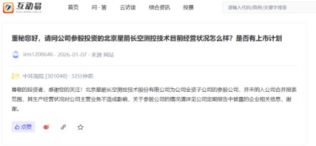 中环海陆:北京星箭长空测控技术公司未纳入公司合并报表范围