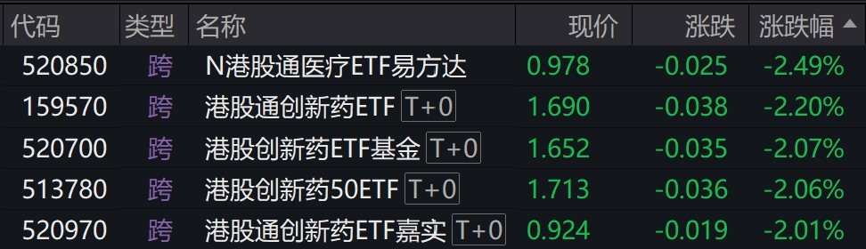 港股创新药概念股走低,多只港股创新药相关ETF跌超2%