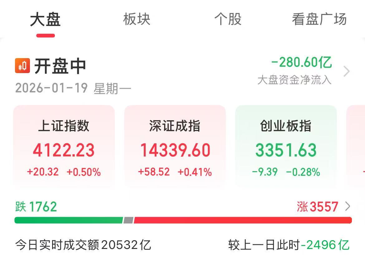 1月19日,沪深京三市成交额超2万亿元,较上日此时缩量超2400亿元,预计全天成交金额约2.7万亿元。