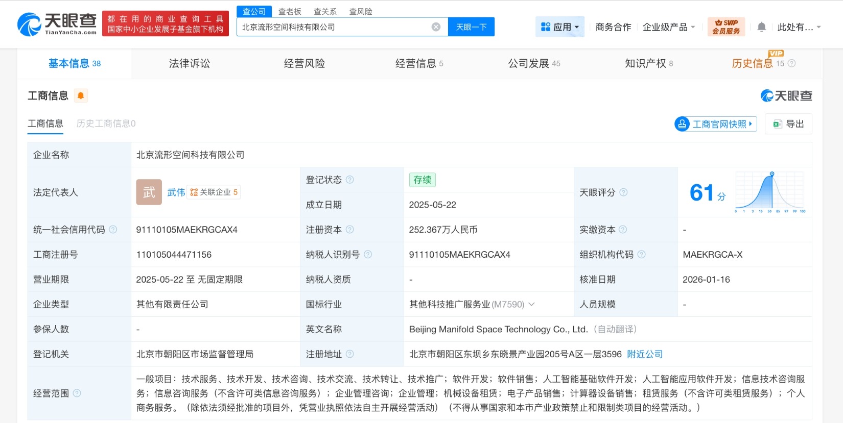 21财经1月19日电,天眼查工商信息显示,近日,北京流形空间科技有限公司发生工商变更,新增华为旗下深圳哈勃科技投资合伙企业(有限合伙)、深圳君联君智创业投资基金合伙企业(有限合伙)、北京梅岭黑马数智人创业投资合伙企业(有限合伙)为股东,同时,注册资本由约219.9万人民币增至约252.4万人民币。北京流形空间科技有限公司成立于2025年5月,法定代表人为武伟,经营范围含软件开发、软件销售、人工智能基础软件开发、人工智能应用软件开发、信息技术咨询服务、信息咨询服务等。股东信息显示,该公司由武伟、北京流形智界企业管理合伙企业(有限合伙)、北京流形创智企业管理合伙企业(有限合伙)等共同持股。公开信息显示,流形空间是一家聚焦世界模型与具身智能领域的公司。