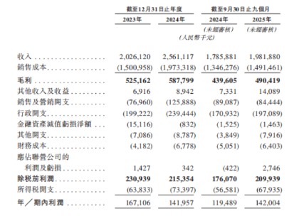 招股书披露,2023年至2024年,公司营收从20.26亿元增长至25.61亿元,同比增幅达26.4%,规模扩张态势显著;2025年前三季度营收进一步增至19.82亿元,同比仍保持11%的增长。