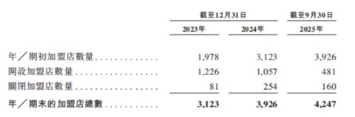 对餐饮品牌而言,加盟驱动的扩张模式既是规模增长的引擎,但也暗藏多重风险。袁记云饺的4266家门店中,加盟店占比高达95%,直营店仅19家,97.2%的收入来自向加盟店销售食材及收取管理服务费,典型的“轻资产+加盟依赖”模式。这种模式支撑公司实现两年半门店数量翻倍的高速扩张,但也暴露了管控短板。2023年至2025年9月,公司累计关停495家加盟店,2024年单年关停254家,关店率与扩张速度同步走高。