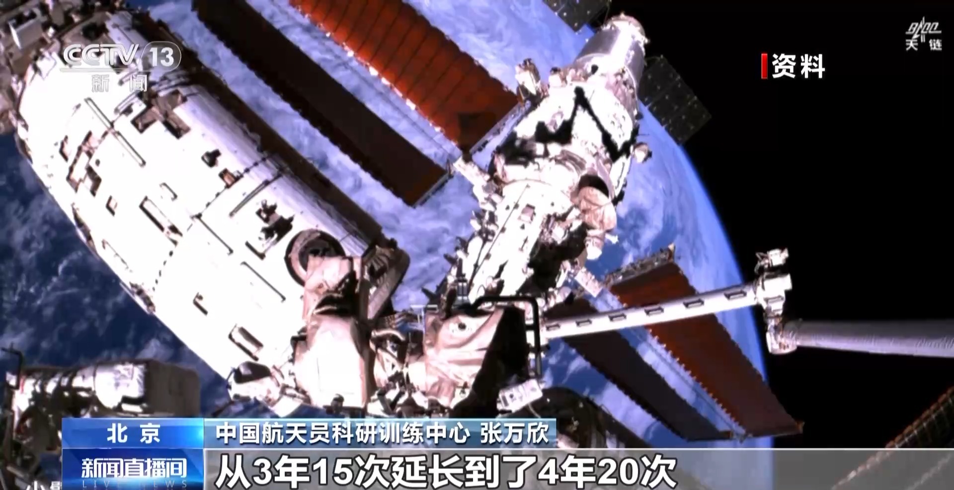 中国航天员科研训练中心张万欣:目前我国的航天服技术在国际上已经实现了从跟跑到并跑的跨越。第一批次的舱外服在轨近4年半,在功效保障方面灵活高效,已经有效支撑了46个人次出舱、舱外作业的任务。实现了等容增效,保障了单次工作时长显著提升,最长的一次出舱活动已经超过了9个小时,成为国际上的一个纪录。建立了舱外服在轨健康状态评估的体系和延寿使用的标准,成功将一批的舱外服寿命从3年15次延长到了4年20次。