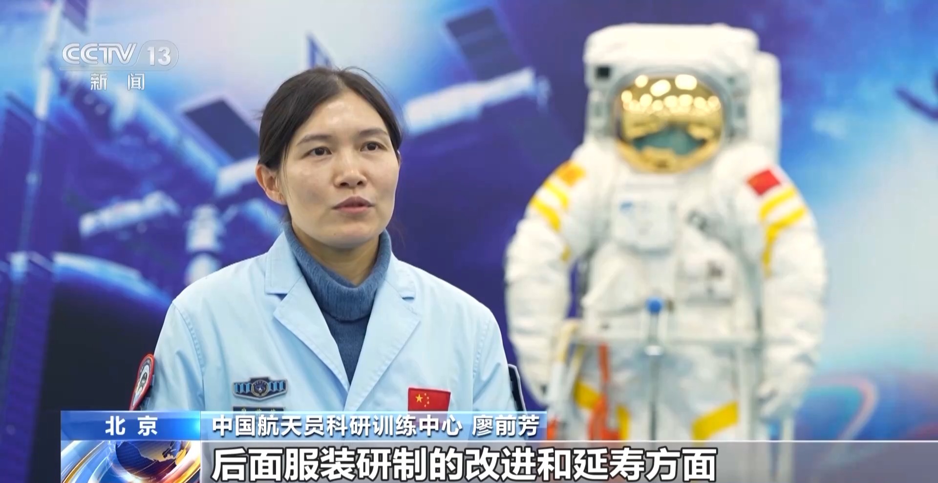中国航天员科研训练中心廖前芳:我们可能还会针对后面服装研制的改进和延寿方面,做相关的实验和研究,为后续服装更好保证航天员出舱活动提供数据。