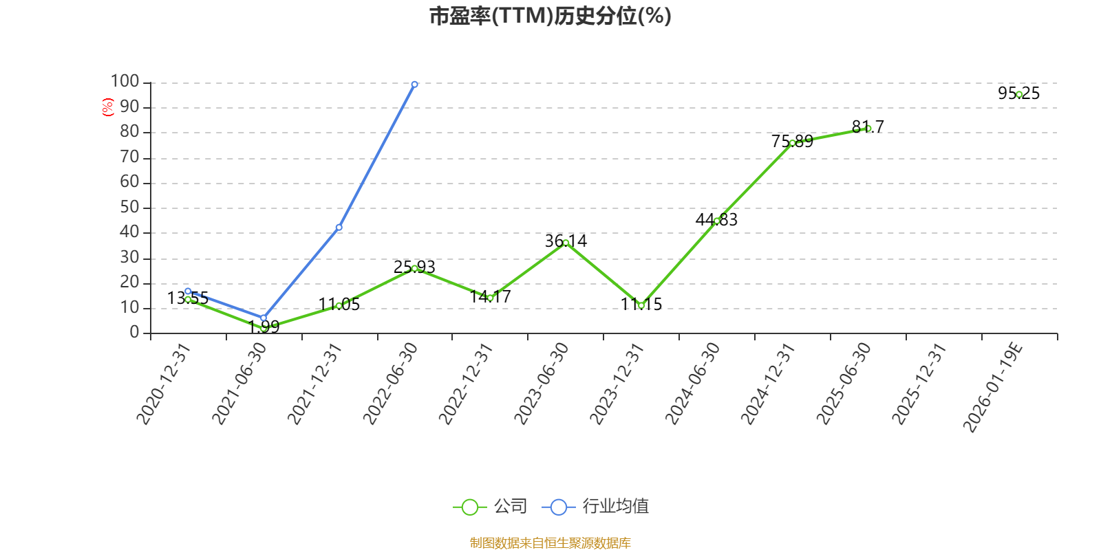 市盈率、市净率为负时,不显示当期分位数,会导致折线图中断。