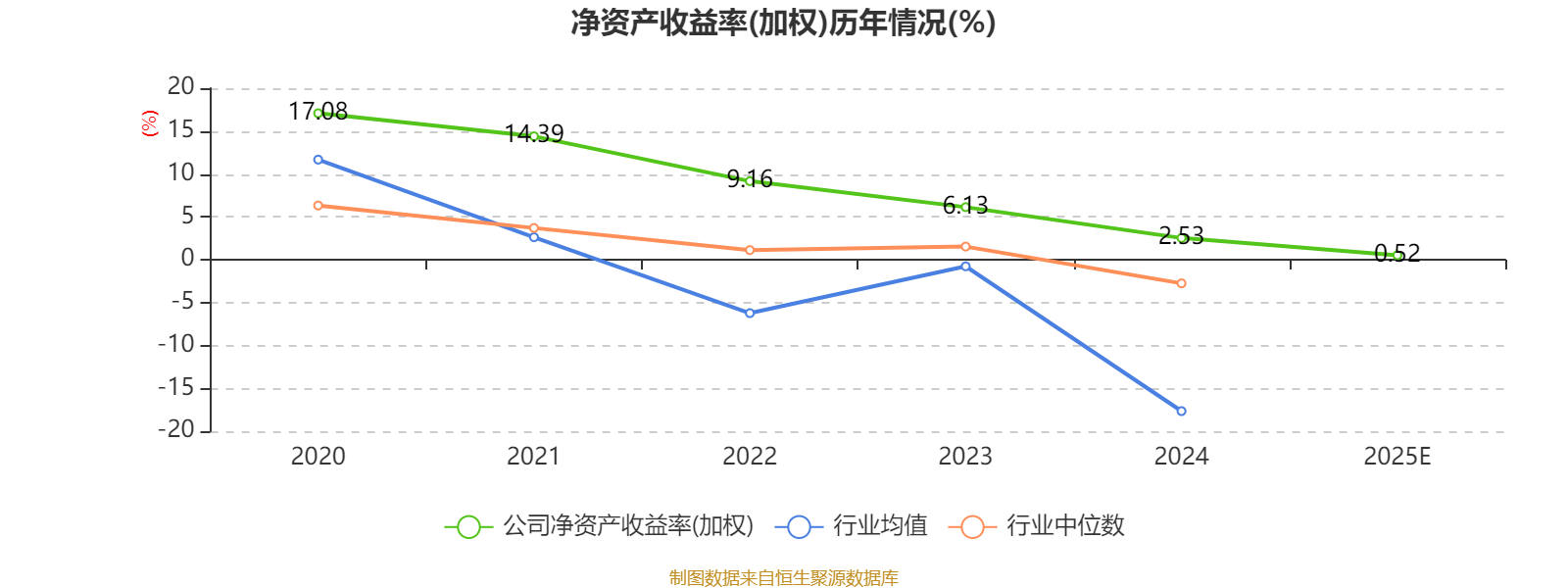 数据显示,2025年公司加权平均净资产收益率为0.52%,较上年同期下降2.01个百分点。