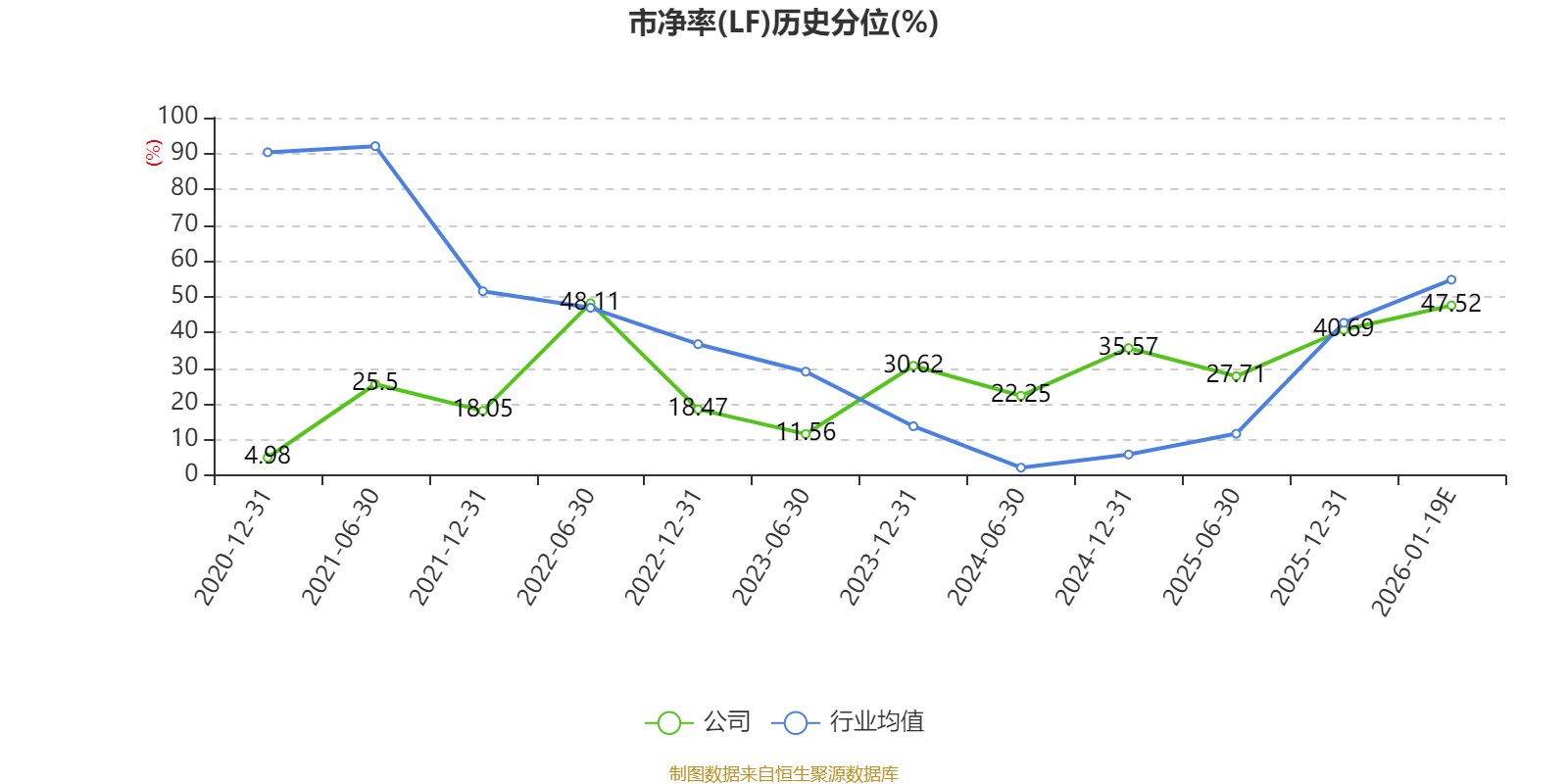 市盈率、市净率为负时,不显示当期分位数,会导致折线图中断。
