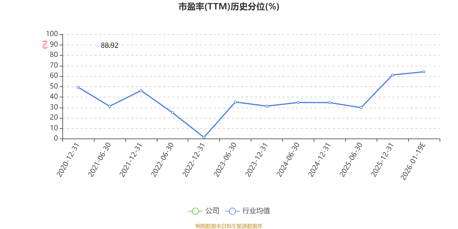 以本次披露业绩预告均值计算,公司近年市盈率(TTM)图如下所示:
