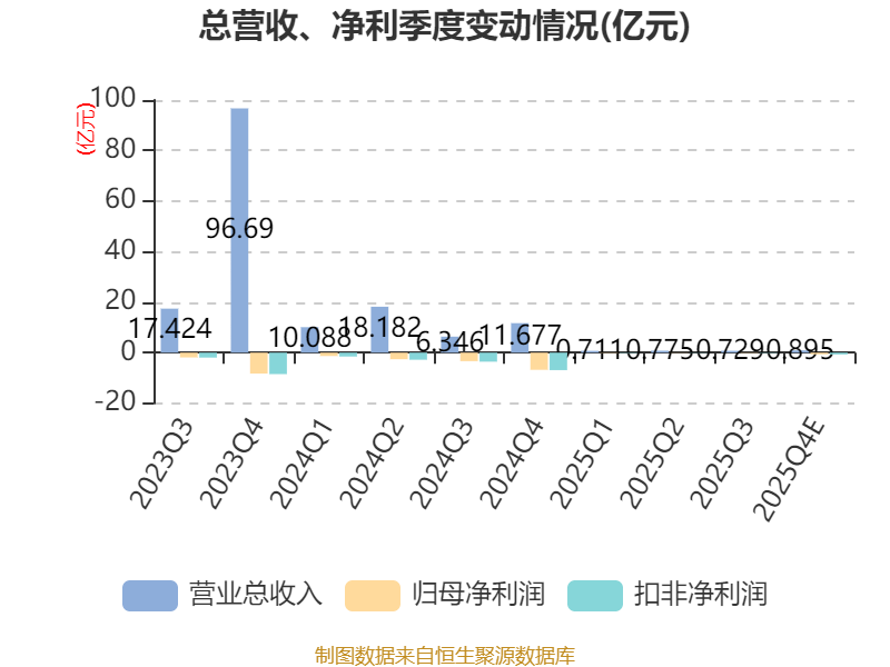 中证智能财讯华远控股(600743)1月19日晚间披露2025年度业绩预告,预计2025年实现营业收入3.06亿元至3.16亿元;归母净利润亏损8500万元至1.15亿元,上年同期亏损14.07亿元;扣非净利润亏损9500万元至1.25亿元,上年同期亏损14.8亿元。以最新收盘价计算,市净率(LF)约7.19倍,市销率(TTM)约14.63倍。