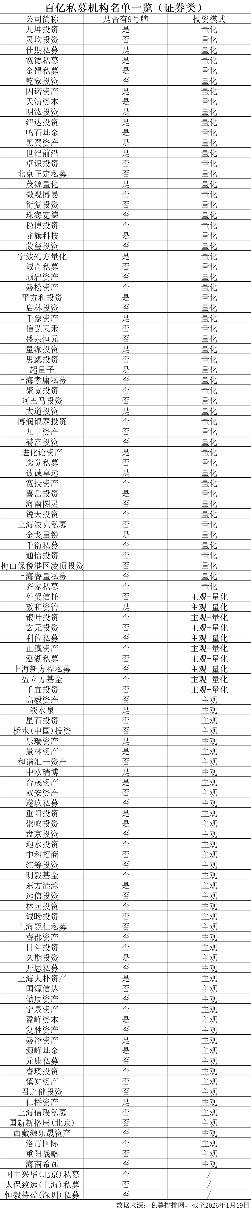 114家百亿私募名单