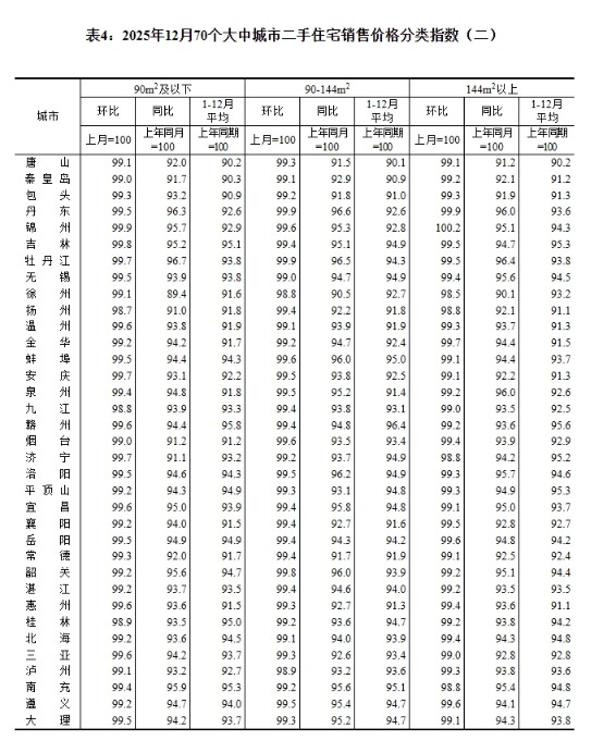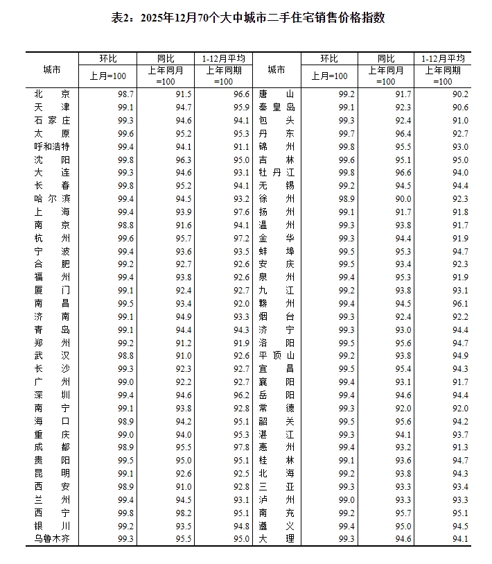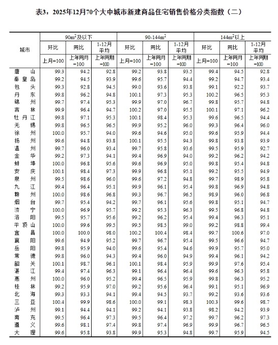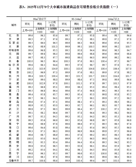 中新网1月19日电据国家统计局网站消息,国家统计局发布2025年12月份70个大中城市商品住宅销售价格变动情况。