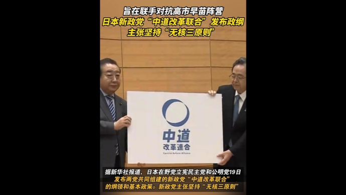 据新华社报道,日本在野党立宪民主党和公明党19日举行记者会,发布两党共同组建的新政党“中道改革联合”的纲领和基本政策。新政党主张坚持“无核三原则”。