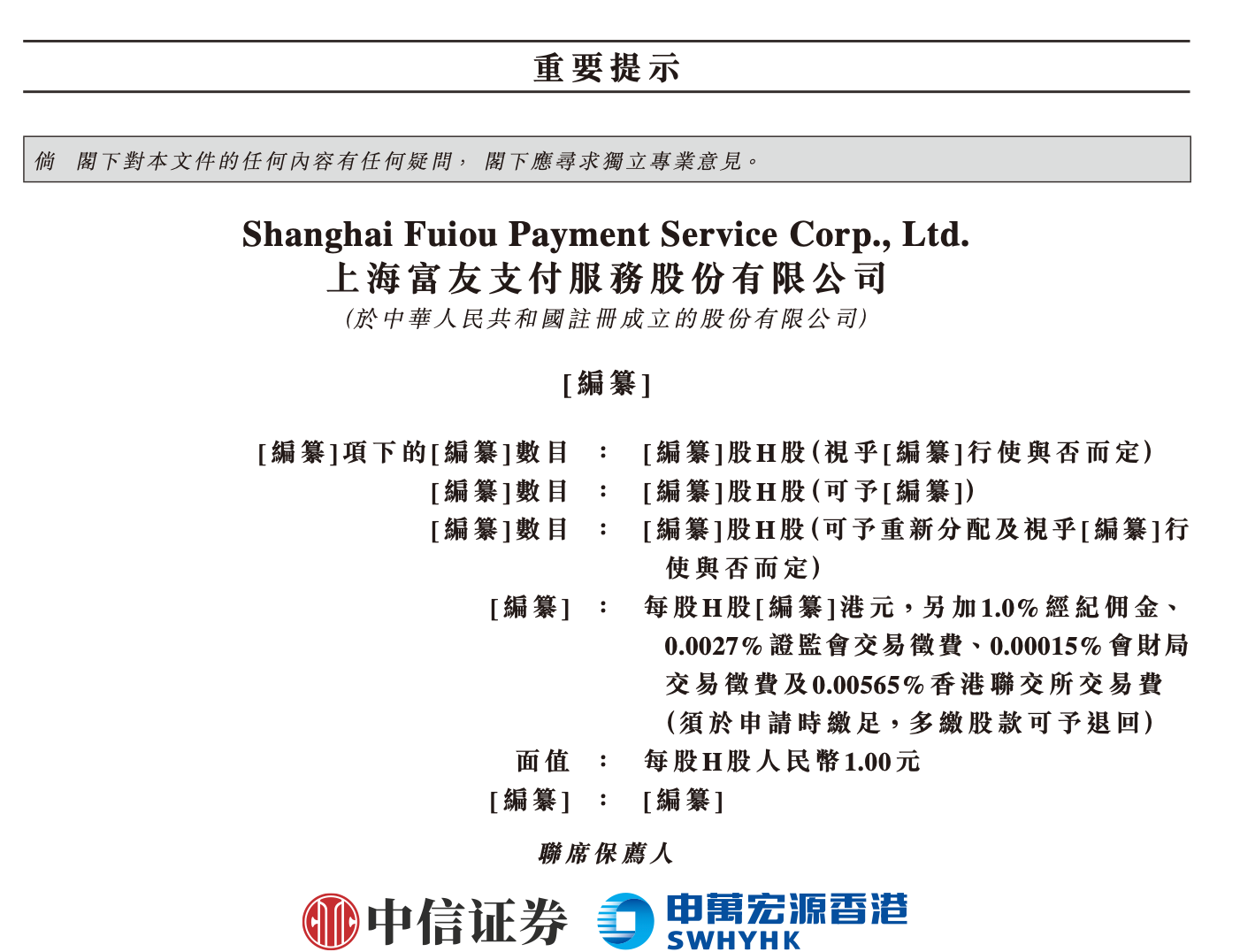 上证报中国证券网讯(记者徐潇潇)1月20日,据港交所披露,上海富友支付服务股份有限公司(下称:富友支付)近日向港交所主板递交上市申请书,中信证券、申万宏源香港为其联席保荐人。
