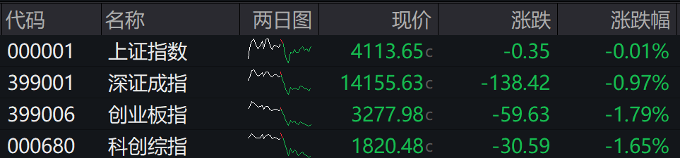 1月20日,A股三大指数高开低走,创业板指盘中一度跌超2%。截至收盘,沪指跌0.01%,深成指跌0.97%,创业板指跌1.79%,科创综指跌1.65%。