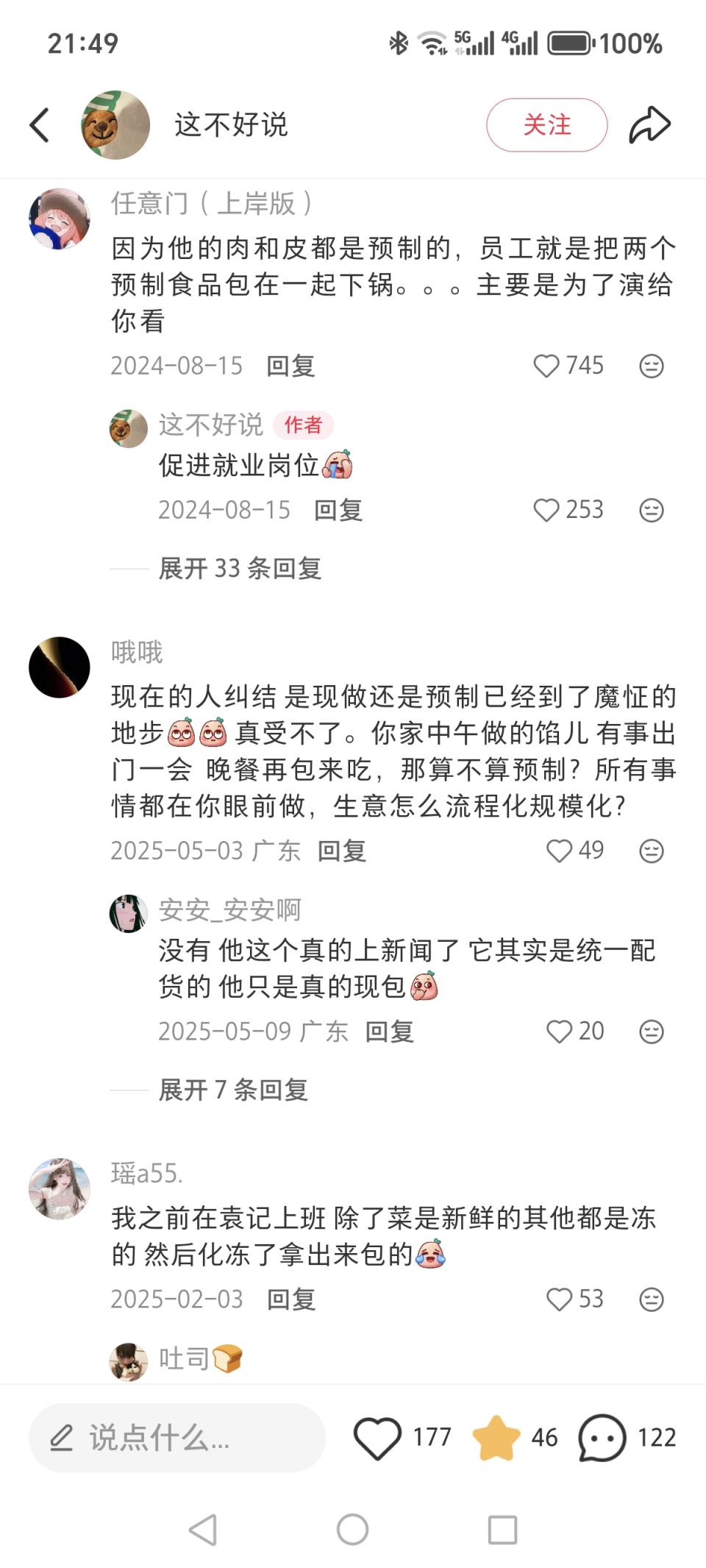 社交媒体上,也有自称是袁记云饺员工的人表示,除了菜是新鲜的,其他的都是冻的,然后化冻拿出来包。