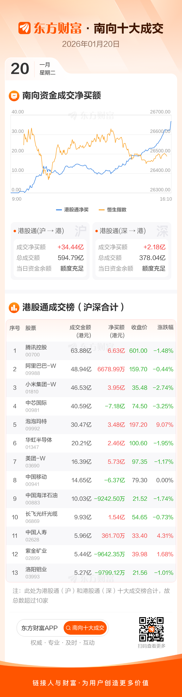 1月20日南向资金净买近37亿港元,近7亿抢筹腾讯控股