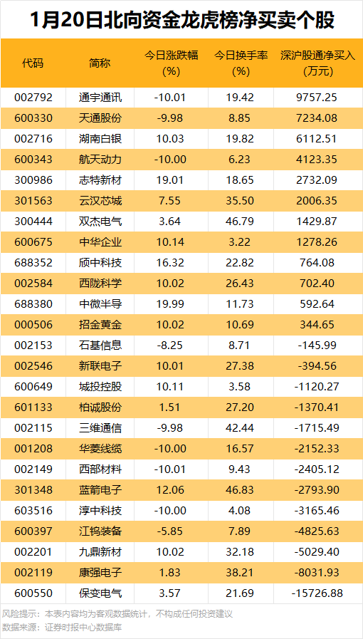 今日龙虎榜现身个股中,12股获北向资金净买入。净买入居首的是通宇通讯,金额为9757.25万元;天通股份、湖南白银紧随其后,净买入金额均超6000万元。