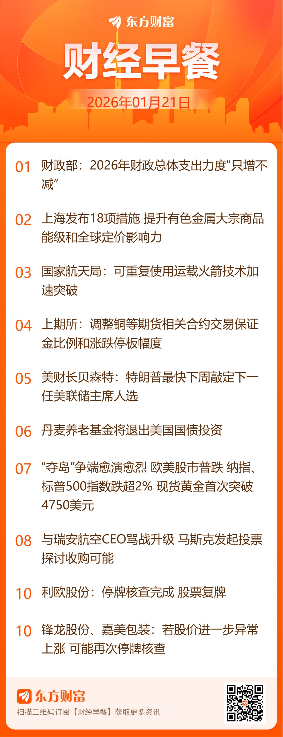 欧洲议会冻结美欧贸易协议批准程序:欧洲议会当地时间20日宣布冻结对去年7月与美国达成的贸易协议的批准程序。这被视为欧盟对美国总统特朗普最新施压举措作出的首次回应。特朗普17日在社交媒体上宣布,将从2月1日起对来自丹麦、挪威、瑞典、法国、德国、英国、荷兰和芬兰的输美商品加征10%关税,并宣称加征的税率将从6月1日起提高至25%,直到相关方就美国“全面、彻底购买格陵兰岛”达成协议。