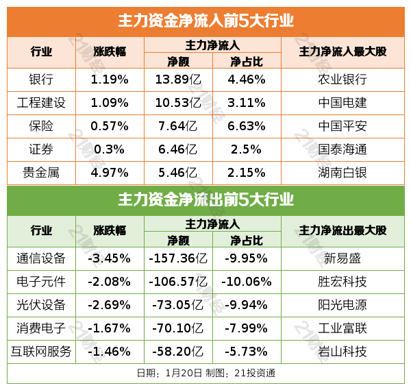 1月20日,三大指数集体收跌,沪指跌0.01%,深成指跌0.97%,创业板指跌1.79%。沪深两市成交额2.78万亿,较上一个交易日放量694亿。盘面上,全市场超3100只个股下跌。化工板块逆势爆发,贵金属概念延续强势,房地产板块表现活跃,AI应用端局部走高。算力硬件、商业航天等板块跌幅居前。