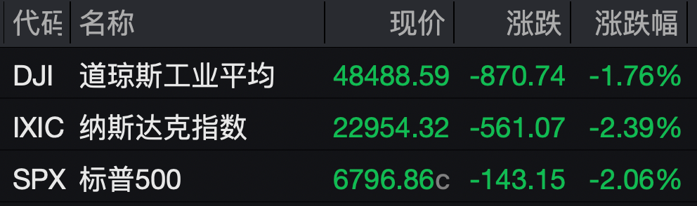 美股重挫:纳指、标普500指数跌逾2%,金价续创历史新高