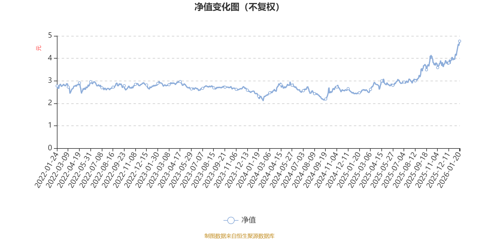 该基金属于偏股混合型基金,长期投资于周期股票。截至1月20日,单位净值为4.766元。基金经理是刘辉和王利刚,目前共同管理的3只基金近一年均为正收益。其中,截至1月20日,银华内需精选混合(LOF)近一年复权单位净值增长率最高,达92.95%;截至1月16日,银华创业板两年定期开放混合最低,为37.45%。