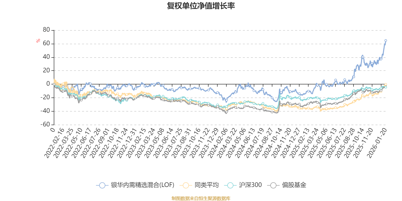 截至1月20日,银华内需精选混合(LOF)近三个月复权单位净值增长率为25.39%,位于同类可比基金15/49;近半年复权单位净值增长率为61.45%,位于同类可比基金14/49;近一年复权单位净值增长率为92.95%,位于同类可比基金5/44;近三年复权单位净值增长率为64.91%,位于同类可比基金10/30。