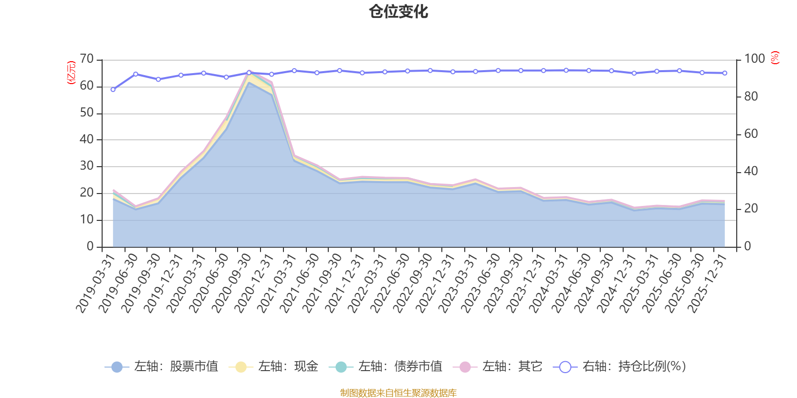 据定期报告数据统计,近三年平均股票仓位为93.81%,同类平均为86.48%。2024年一季度末基金达到94.35%的最高仓位,2019年一季度末最低,为84.08%。
