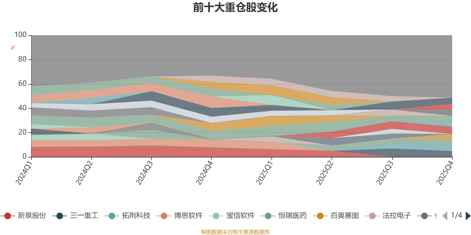 截至2025年四季度末,基金十大重仓股分别是思源电气、恒瑞医药、宁德时代、德业股份、三一重工、百龙创园、洛阳钼业、拓荆科技、金诚信、百奥赛图。