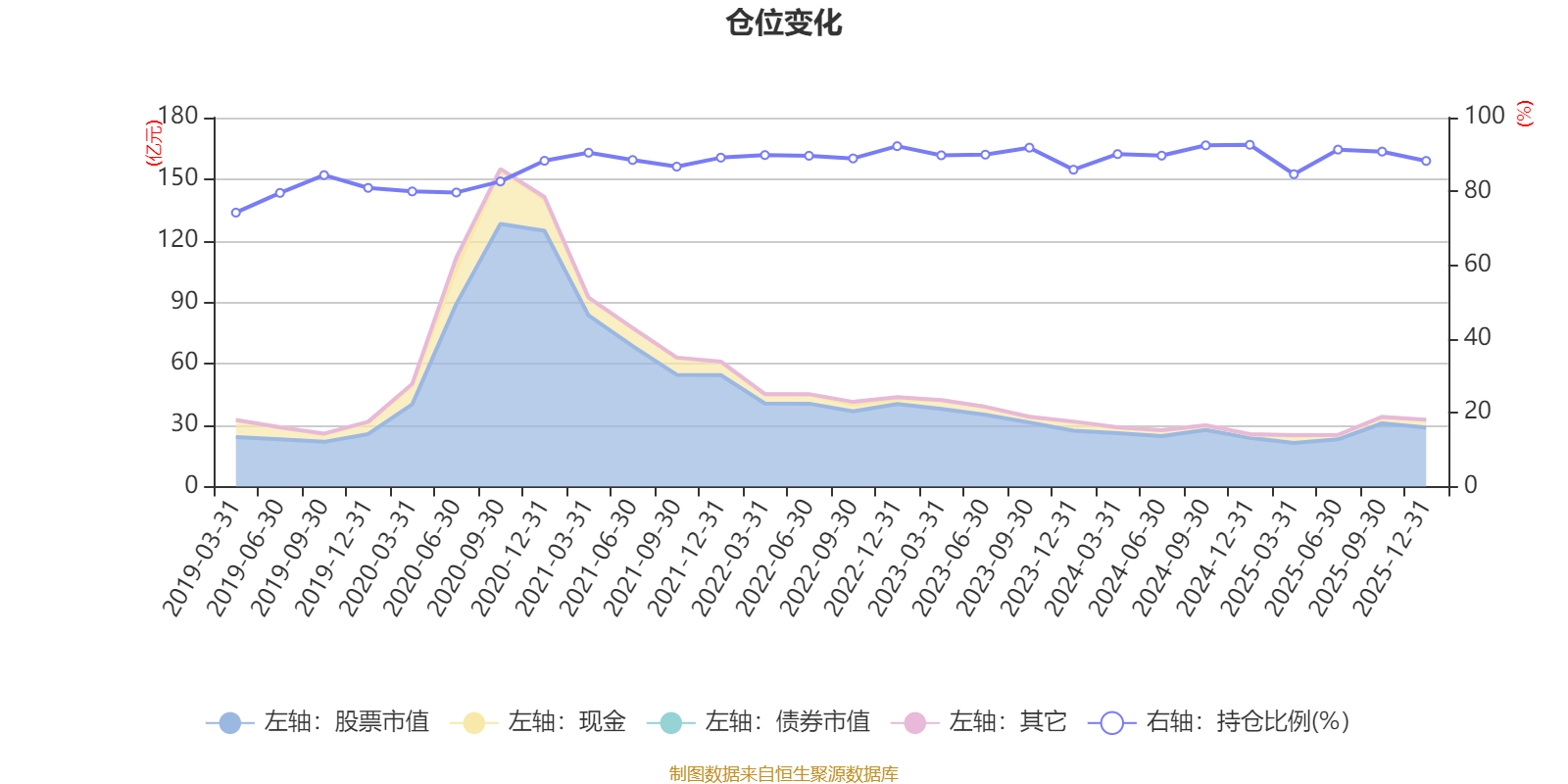 据定期报告数据统计,近三年平均股票仓位为89.79%,同类平均为86.13%。2024年末基金达到92.63%的最高仓位,2019年一季度末最低,为74.25%。