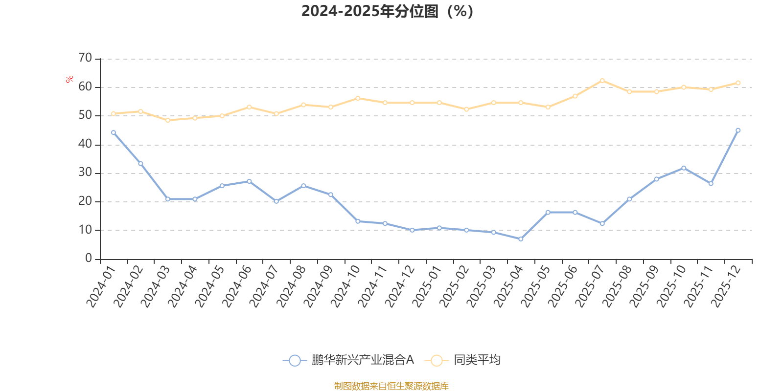 通过所选区间该基金净值增长率分位图,可以观察该基金与同类基金业绩比较情况。图为坐标原点到区间内某时点的净值增长率在同类基金中的分位数。
