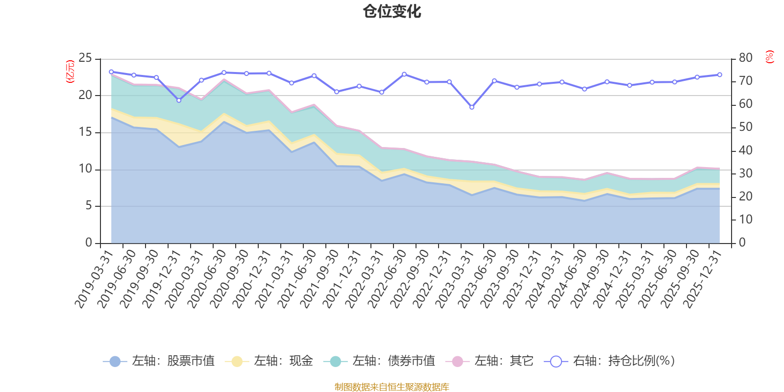 据定期报告数据统计,近三年平均股票仓位为68.88%,同类平均为72.46%。2019年一季度末基金达到74.36%的最高仓位,2023年一季度末最低,为59.01%。