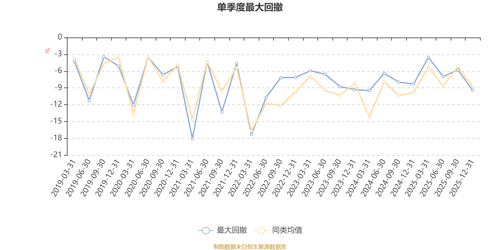 截至1月20日,基金近三年最大回撤为28.21%,同类可比基金排名200/539。单季度最大回撤出现在2021年一季度,为18.05%。
