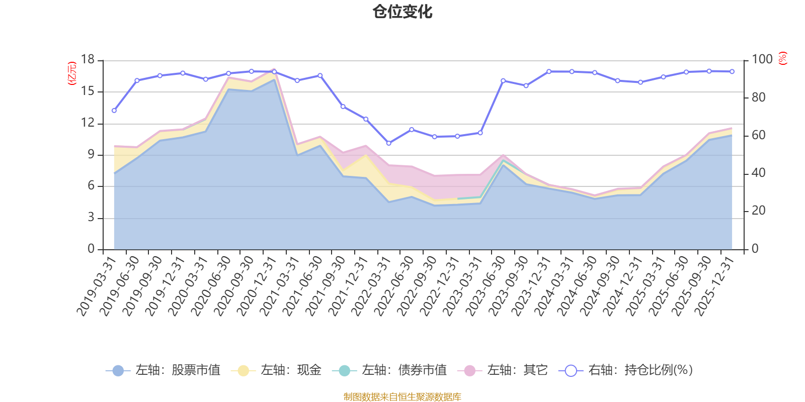 据定期报告数据统计,近三年平均股票仓位为89.18%,同类平均为86.03%。2025年三季度末基金达到94.27%的最高仓位,2022年一季度末最低,为56.19%。