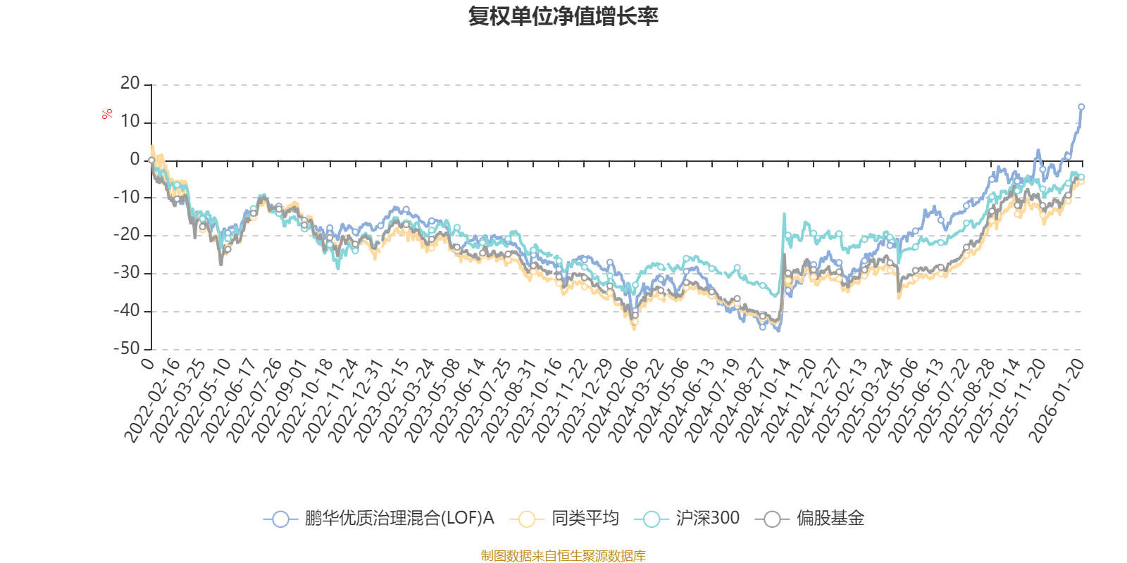 截至1月20日,鹏华优质治理混合(LOF)A近三个月复权单位净值增长率为20.80%,位于同类可比基金13/265;近半年复权单位净值增长率为32.15%,位于同类可比基金73/265;近一年复权单位净值增长率为60.35%,位于同类可比基金35/265;近三年复权单位净值增长率为31.01%,位于同类可比基金76/256。