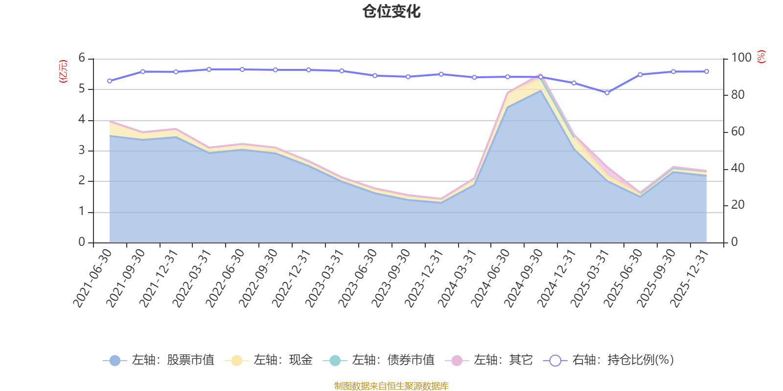 据定期报告数据统计,近三年平均股票仓位为90.13%,同类平均为86.49%。2022年一季度末基金达到94.15%的最高仓位,2025年一季度末最低,为81.5%。