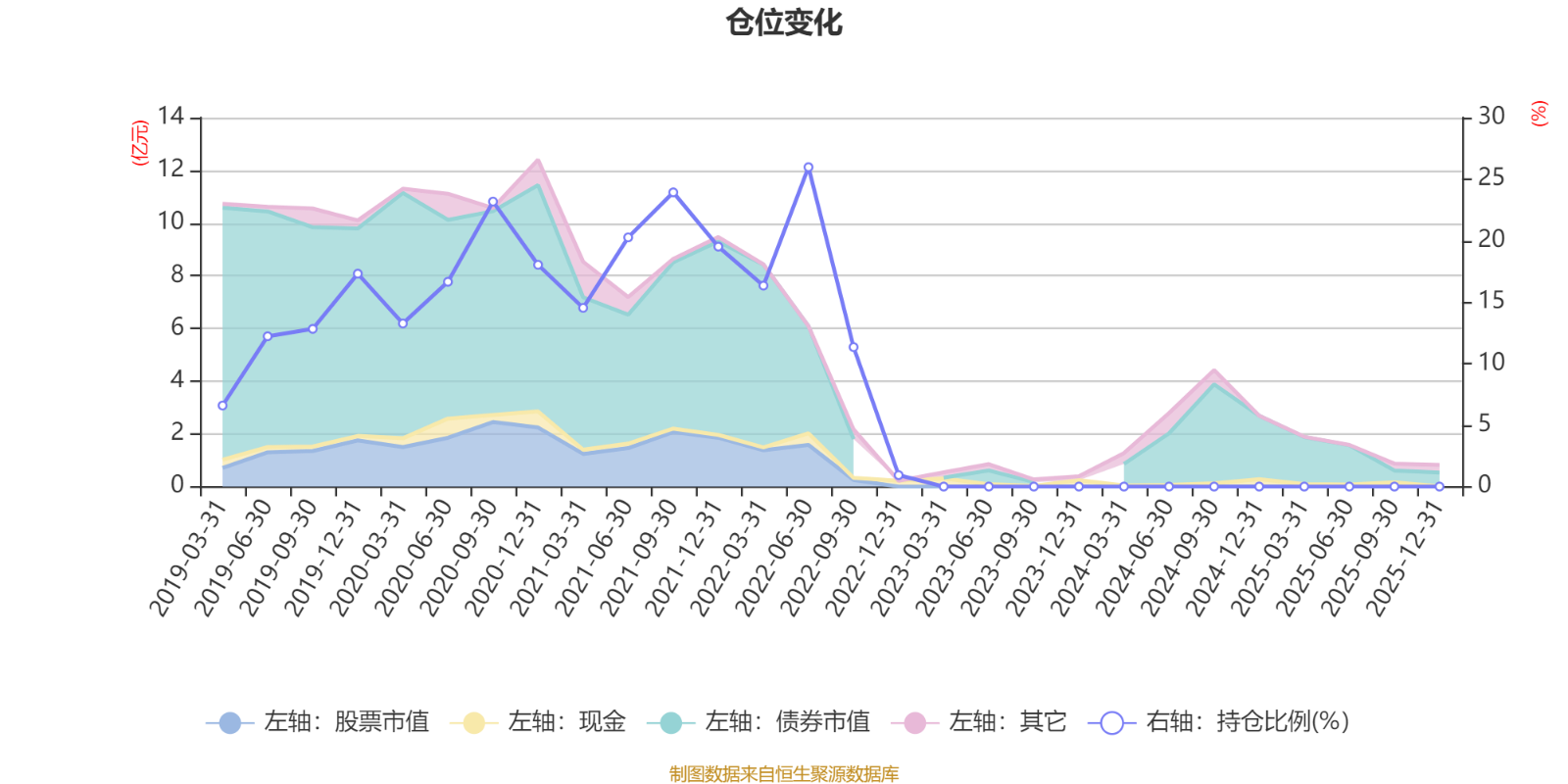 据定期报告数据统计,近三年平均股票仓位为0%,同类平均为54.08%。2022年上半年末基金达到25.97%的最高仓位,2022年末最低,为0.93%。
