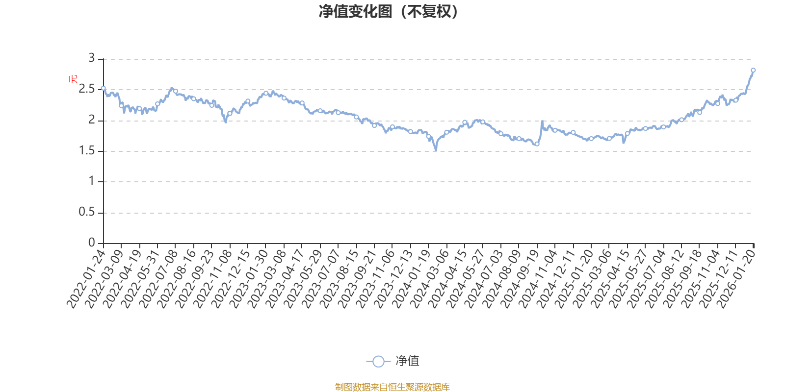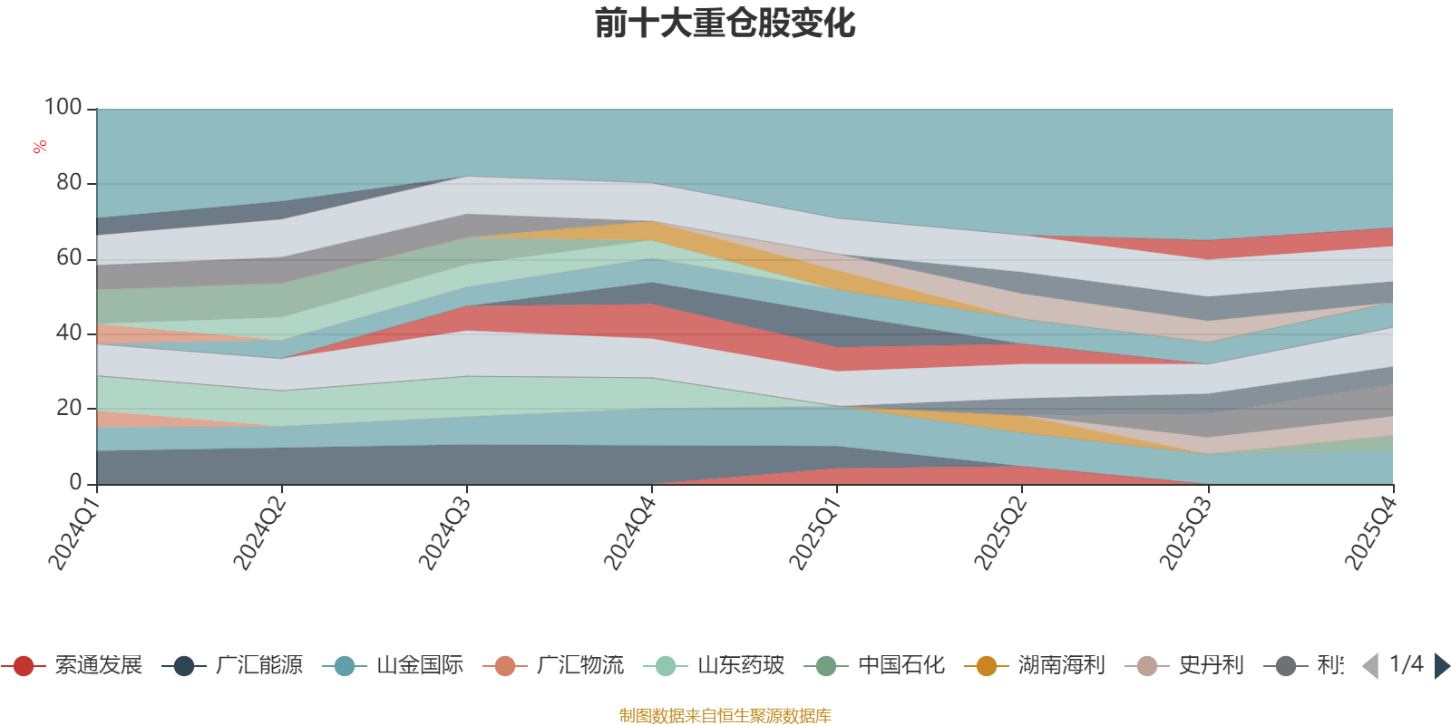 该基金持股集中度较高,近2年前十大重仓股集中度长期超过60%。截至2025年四季度末,基金十大重仓股分别是蓝晓科技、招商轮船、山金国际、利安隆、呈和科技、江山股份、史丹利、中煤能源、利尔化学、中国石化。