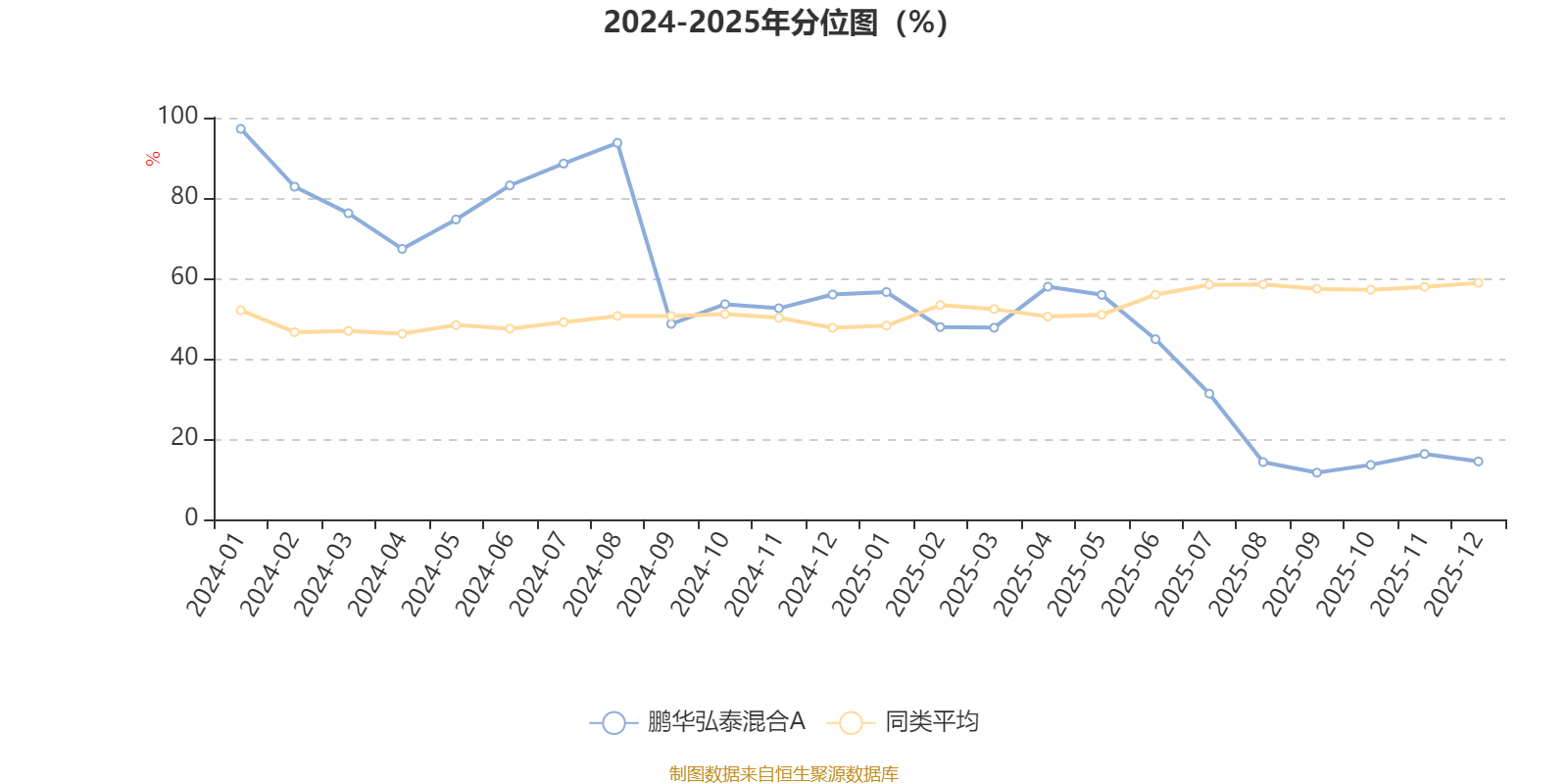 通过所选区间该基金净值增长率分位图,可以观察该基金与同类基金业绩比较情况。图为坐标原点到区间内某时点的净值增长率在同类基金中的分位数。