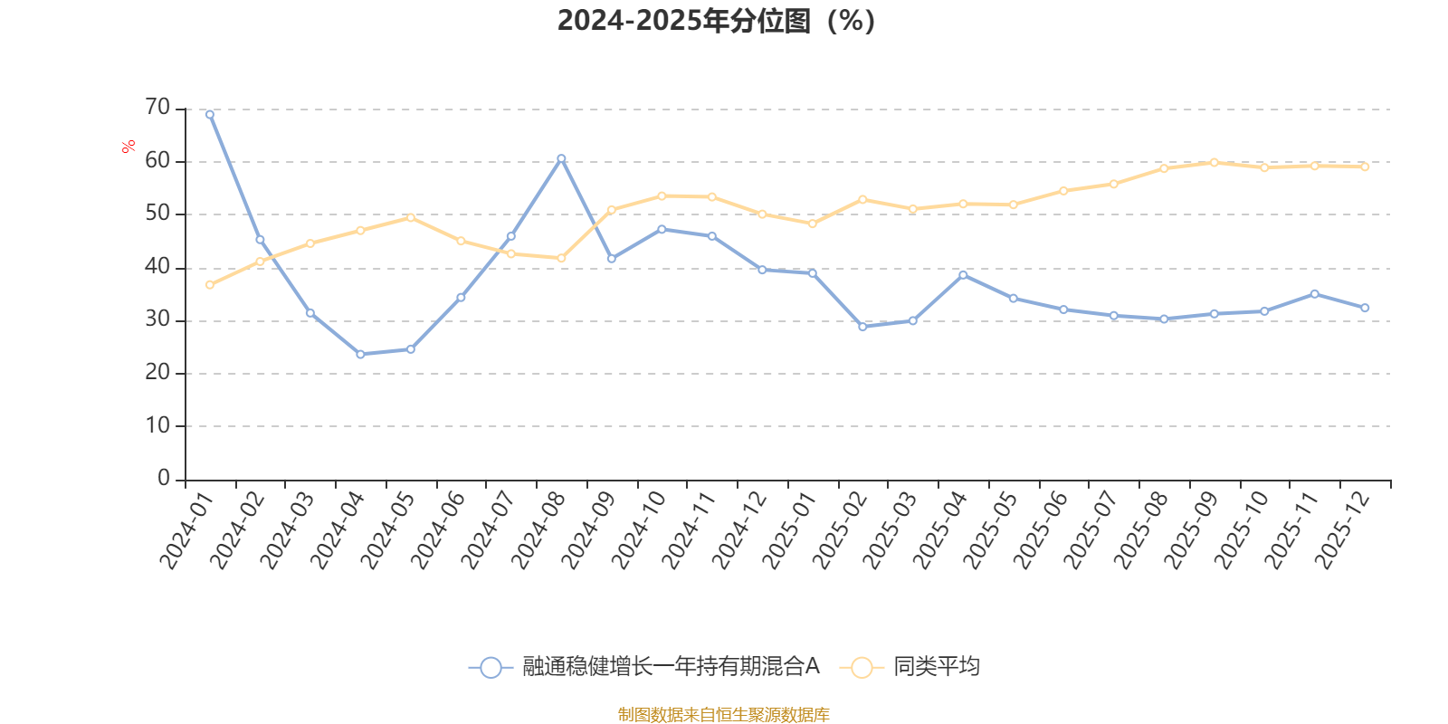 通过所选区间该基金净值增长率分位图,可以观察该基金与同类基金业绩比较情况。图为坐标原点到区间内某时点的净值增长率在同类基金中的分位数。
