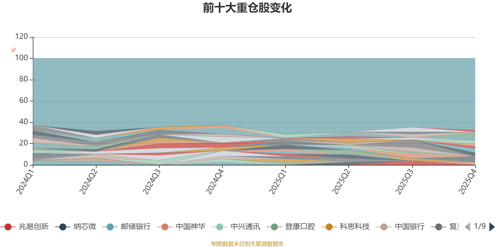 截至2025年四季度末,基金十大重仓股分别是赤峰黄金、洛阳钼业、新华保险、寒武纪、东山精密、农业银行、中国神华、中集车辆、中际旭创、华泰证券。