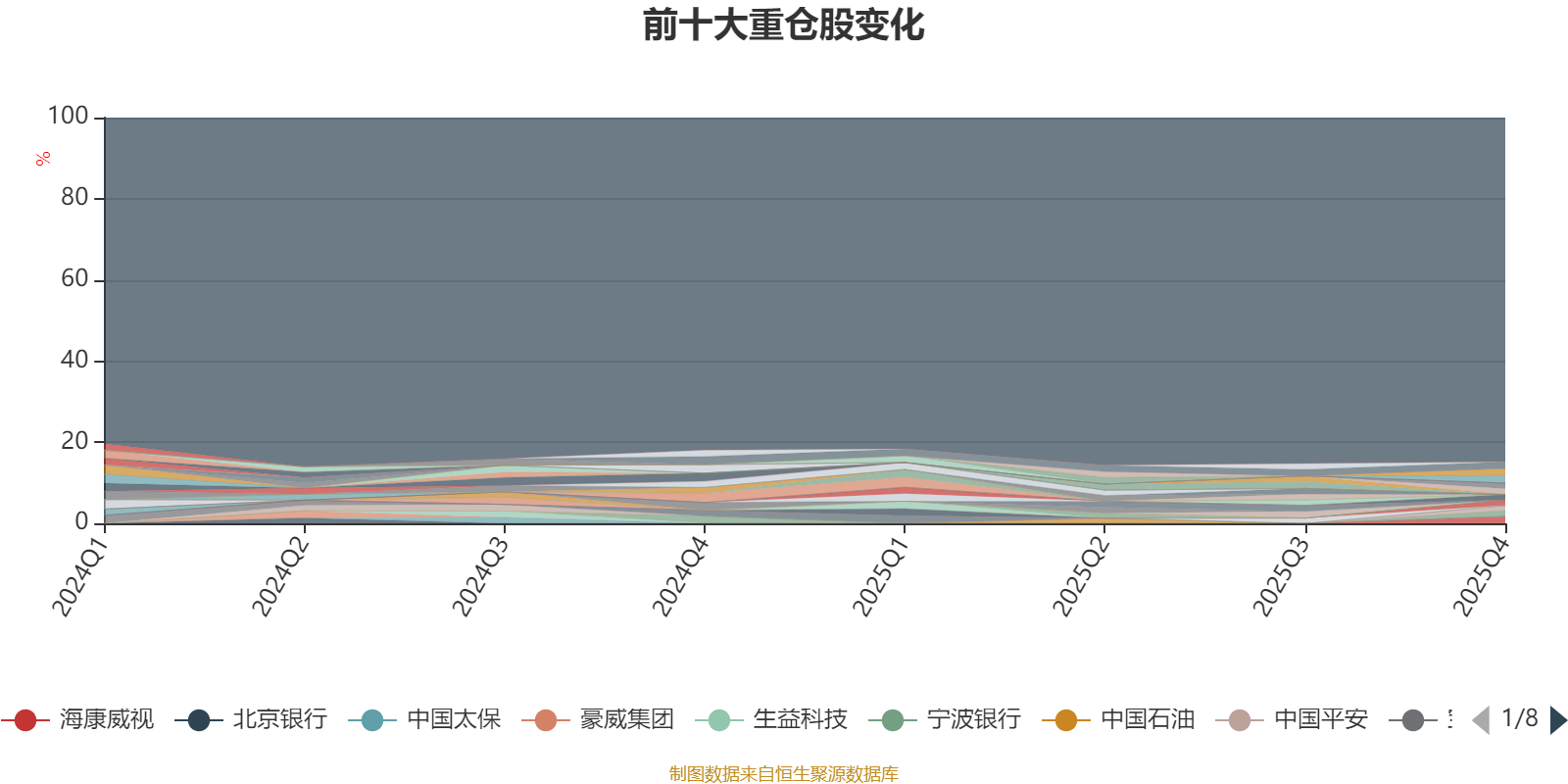 截至2025年四季度末,基金十大重仓股分别是药明康德、宁德时代、海康威视、蓝思科技、宁波银行、新华保险、珠海冠宇、伊利股份、华能国际、中国平安。