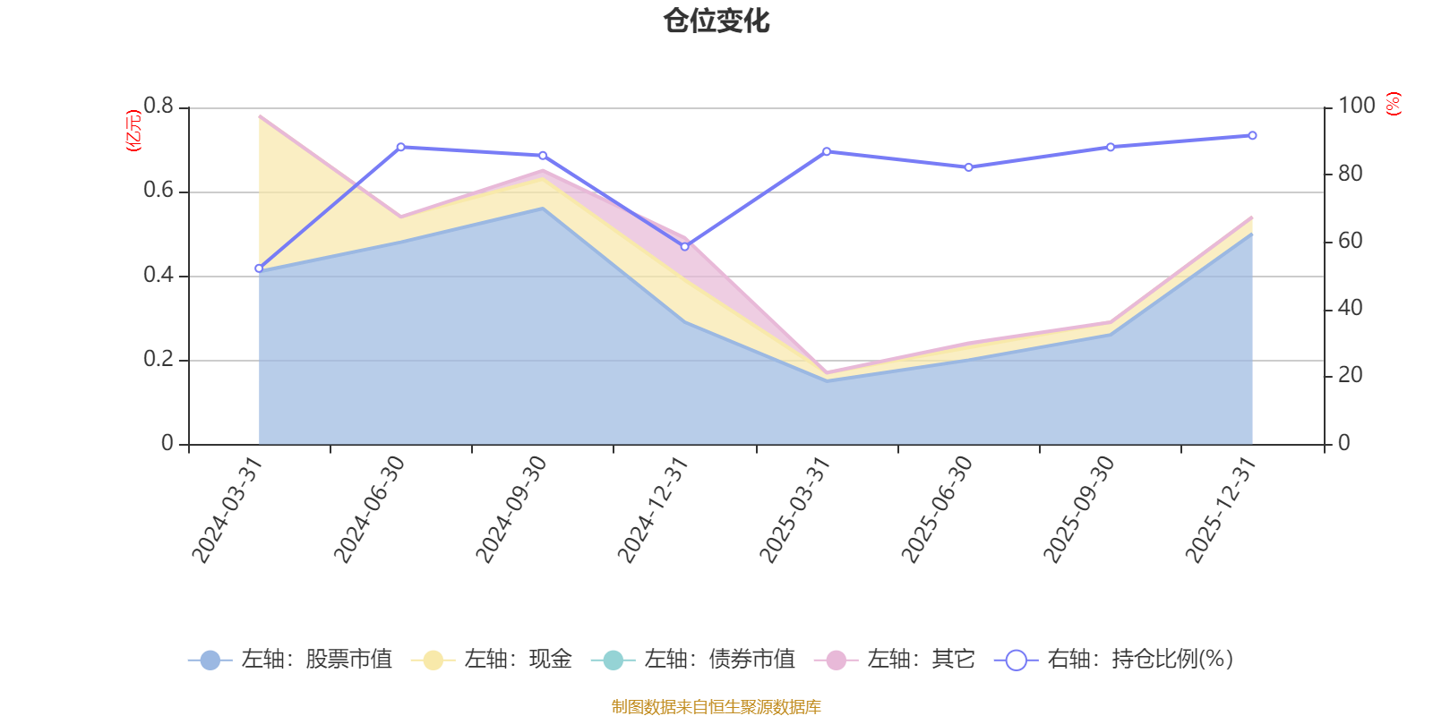 据定期报告数据统计,成立以来平均股票仓位为79.24%,同类平均为83.87%。2025年末基金达到91.69%的最高仓位,2024年一季度末最低,为52.24%。
