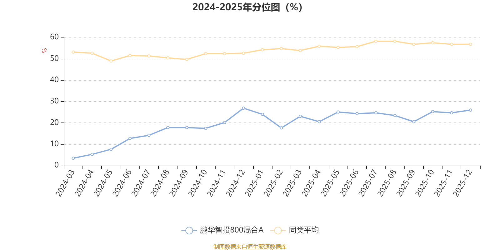 通过所选区间该基金净值增长率分位图,可以观察该基金与同类基金业绩比较情况。图为坐标原点到区间内某时点的净值增长率在同类基金中的分位数。