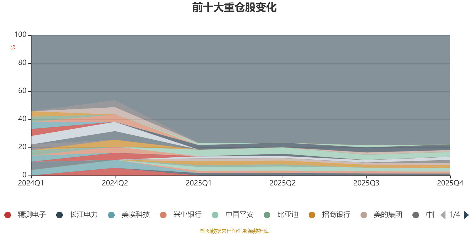 截至2025年四季度末,基金十大重仓股分别是宁德时代、贵州茅台、中国平安、紫金矿业、招商银行、中际旭创、美的集团、兴业银行、新易盛、长江电力。