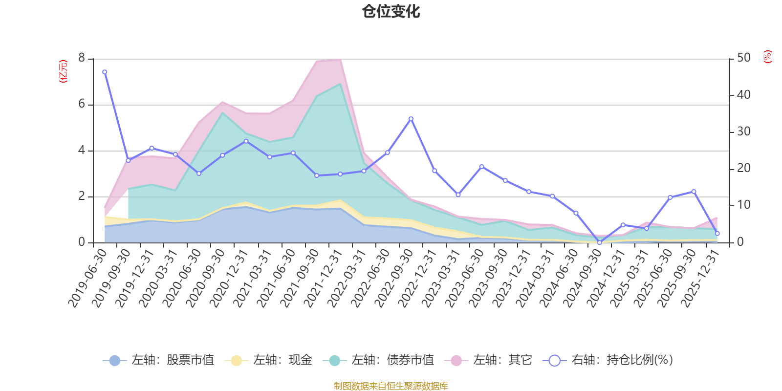 据定期报告数据统计,近三年平均股票仓位为10.21%,同类平均为19.14%。2019年上半年末基金达到46.38%的最高仓位,2024年三季度末最低,为0.04%。