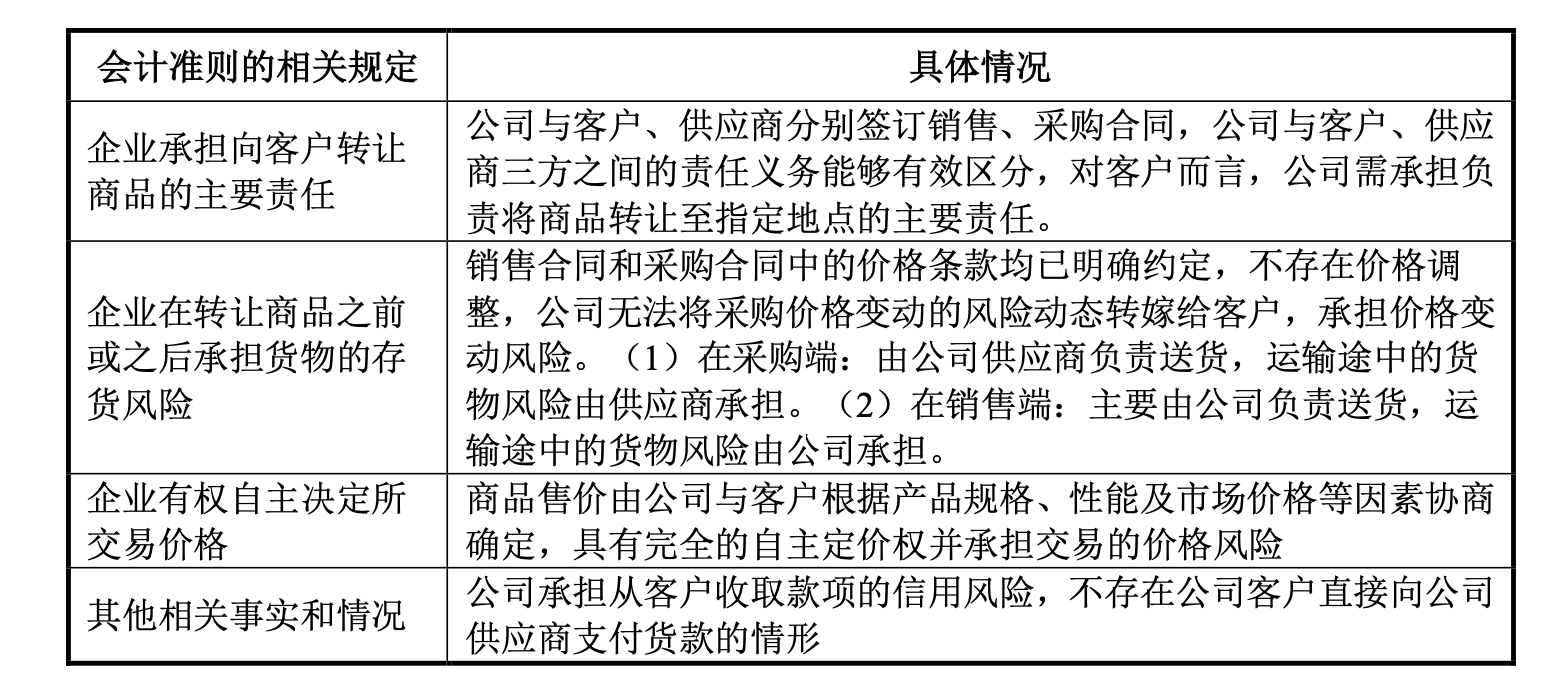 按照企业会计准则,判断的关键在于公司是否在客户获得相关商品控制权之前控制了该商品,高义包装在回复中解释,其“一站式采购”是根据客户需求,自主外购辅助包装成品并直接销售,公司声称,在此过程中,其承担了存货风险,拥有对产品的自主定价权,并独立管理与供应商的结算,因此符合按总额法确认收入的条件。