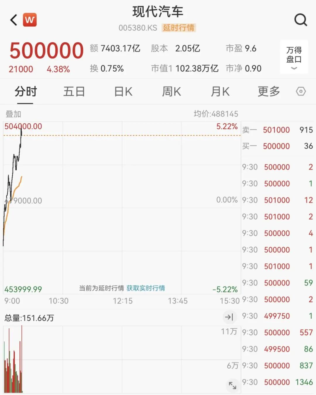 个股方面,现代汽车继续延续强势,股价上涨4.38%,至50万韩元,市值突破102万亿韩元。