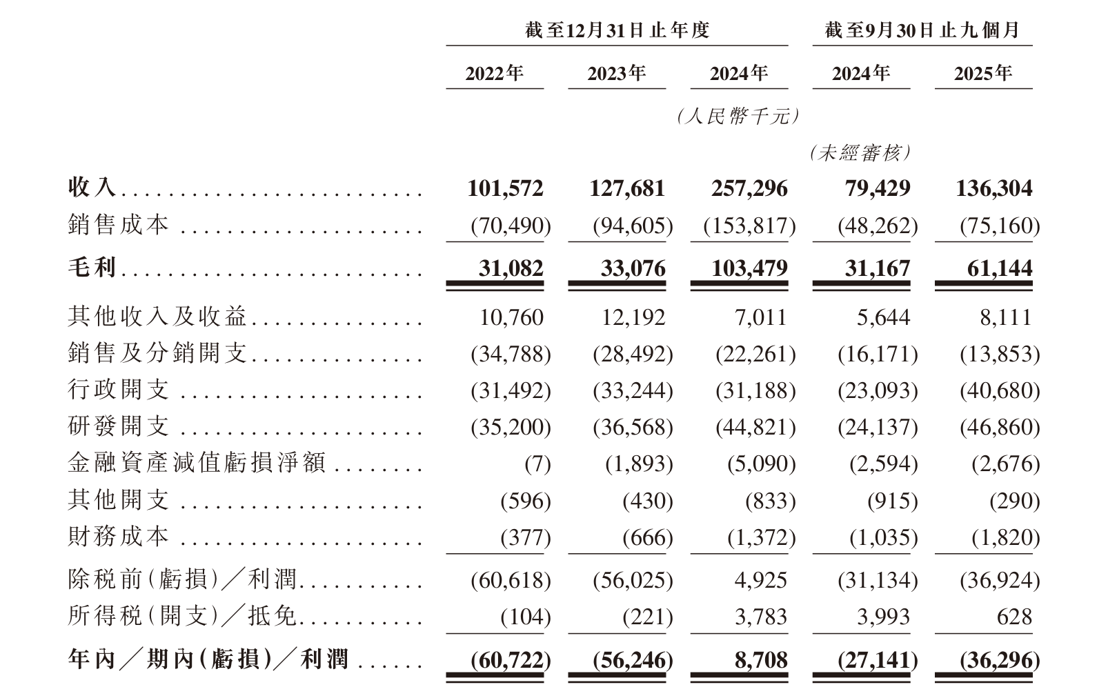 极视角解释称,公司于2022年、2023年录得亏损主要由于成本结构及与软件定义一体式AI解决方案扩张相关的营运开支所致。2025年前三季度录得亏损主要是因为公司的业务具显著季节性特征,故通常集中于下半年产生收入。