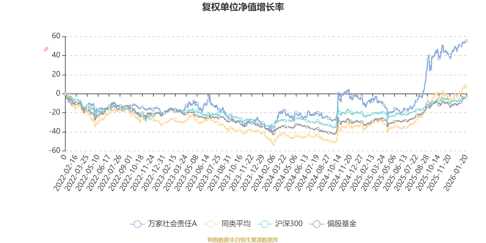 截至1月20日,万家社会责任A近三个月复权单位净值增长率为11.14%,位于同类可比基金161/229;近半年复权单位净值增长率为68.80%,位于同类可比基金34/229;近一年复权单位净值增长率为69.44%,位于同类可比基金77/221;近三年复权单位净值增长率为87.06%,位于同类可比基金32/165。