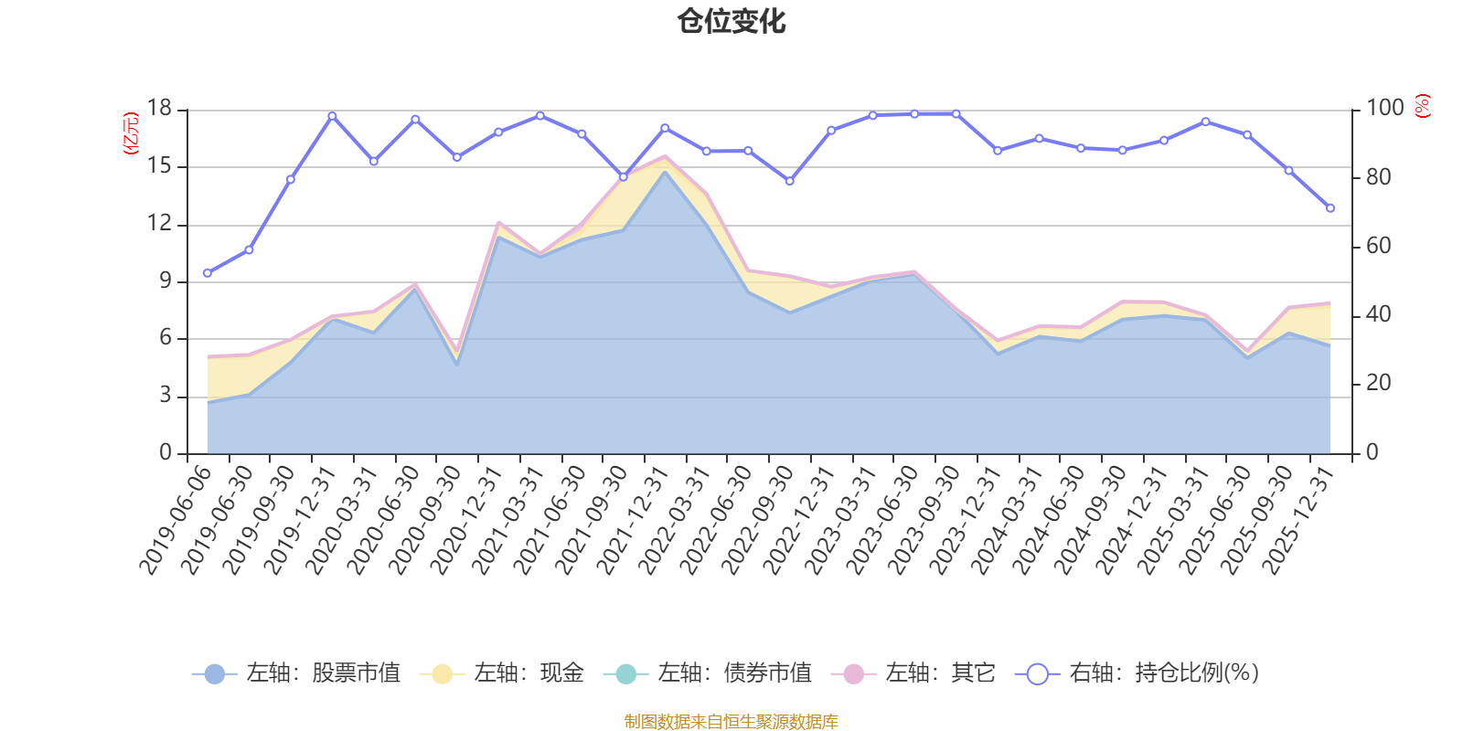 据定期报告数据统计,近三年平均股票仓位为90.55%,同类平均为86.85%。2023年三季度末基金达到98.78%的最高仓位,2019年上半年末最低,为52.51%。